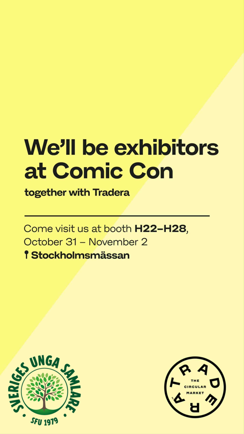 Möt Sveriges Unga Samlare på Comic Con i Stockholm den 31 Okt - 2 Nov. Mässan håller till i stockholmsmässan i Älvsjö. Mässan har öppet 10-1 fredagen den 31 oktober, 10-19 löradgen den 1 november och 10-18 lördagen den 2 november.